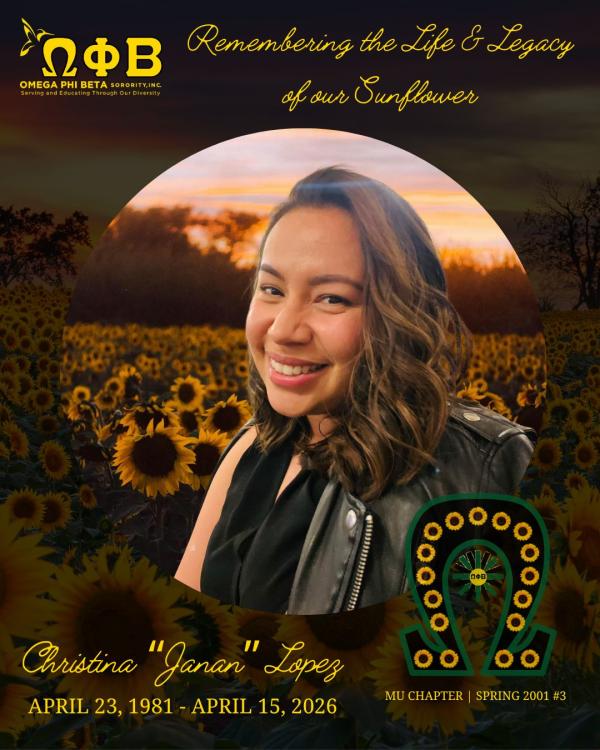 Affectionately known as “Janan,” a name meaning “Heart and Soul,” Christina lived in a way that truly reflected that spirit. As a member of the Spring 2001 class of Mu Chapter, she formed bonds that would last a lifetime, and her presence within her sisterhood was one of warmth, loyalty, and unwavering support.